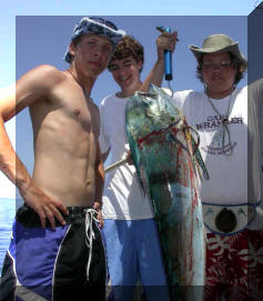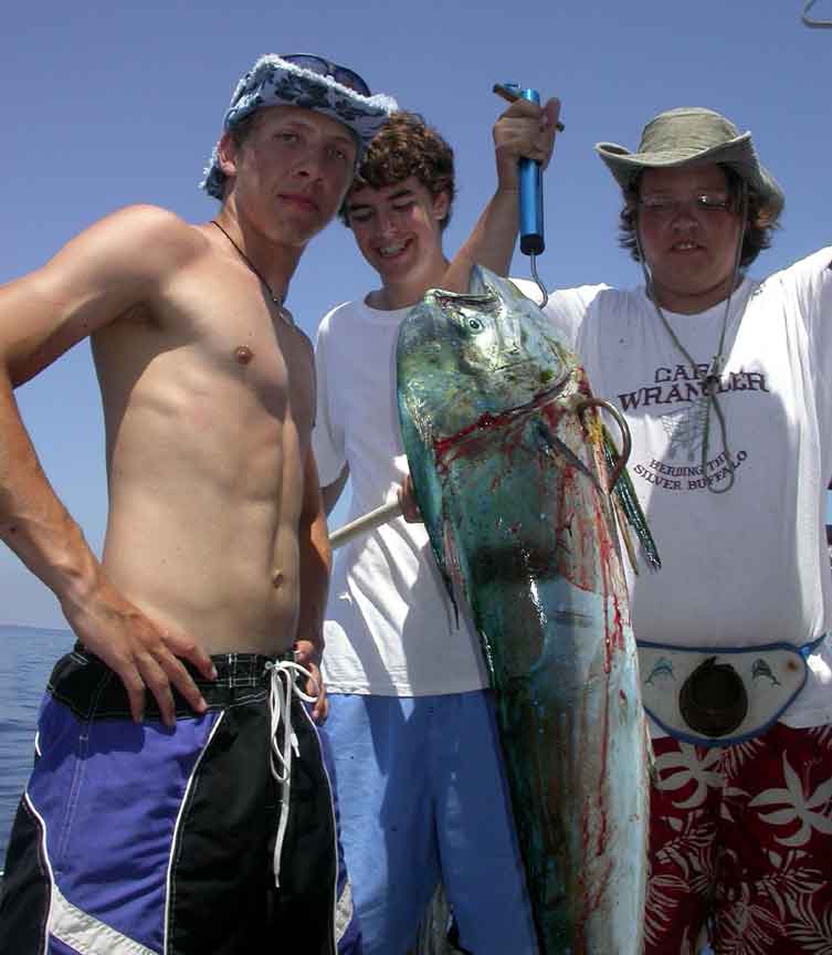 below, a 21 lb, 54" mahi-mahi (also knows as dolphin or dorado) caught aboard siesta by a missouri scout crew. for more information about boy scout charters, and sailboat charters in general, aboard our 44' siesta, check out the island ventures section)