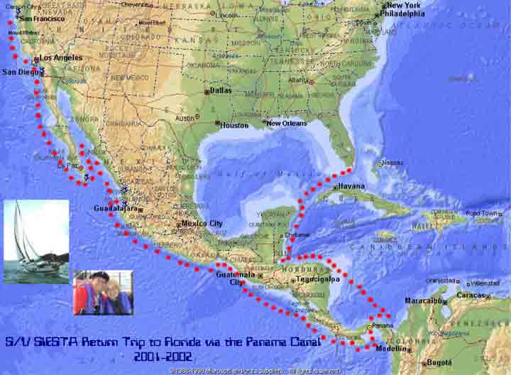 our most extensive sailing voyage to date was completed on june 16th, 2003. almost two years since we left san francisco bay, right after 9/11, we completed our voyage aboard our sailboat "siesta", from san francisco, ca, via the panam� canal, to our home base in the florida keys! for more information on this major adventure, visit the log of the siesta.