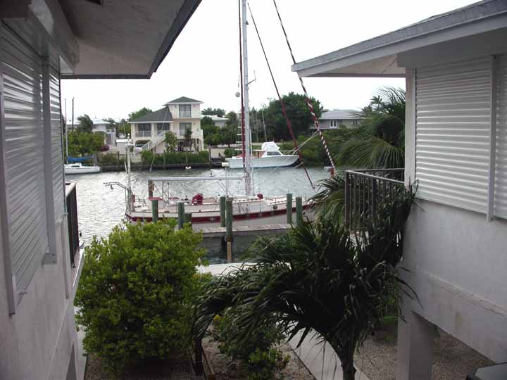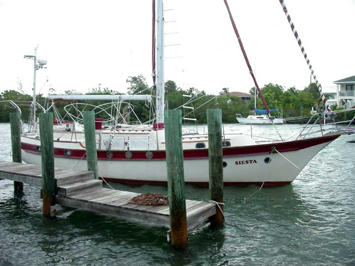 FRANCES: After completing the last (11th) Boy Scout Charter trip, SIESTA was sailed home. Right after arriving home during the first week of September, hurricane FRANCES, a huge hurricane, hit the northern Bahamas as a category 4 hurricane, and then headed for the east coast of Florida. The Middle Keys were under Tropical Storm Warning. The eye hit Ft. Pierce and damage was suffered as far south as Delray Beach, where our daughter Ana lives. Fortunately, Ana and Fred did not suffer much damage to their house. Uncertain as to where FRANCES would hit Florida, we hauled SIESTA at a nearby boat yard and stripped her of her sails and canvas on deck. We experienced 50-60 mph winds in Marathon, due to the sheer size of this hurricane.